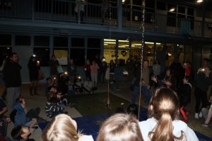 In the auditorium were a variety of student science projects, including a Van de Graaf Generator and a Mars rover. The Van de Graaf Generator used electrostatic repulsion of like charges to make people’s hair stand up making students laugh at the comical sight. The Mars Rover had students and adults lying on the ground as the rover rolled over their backs.