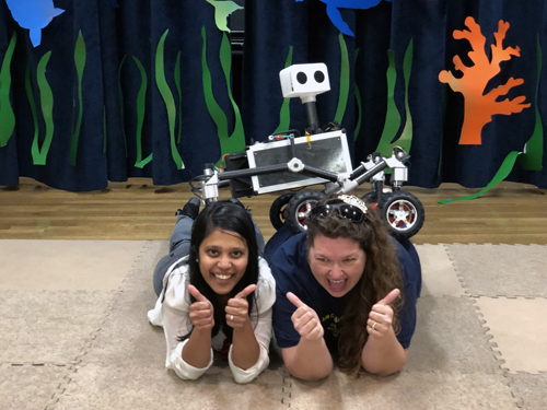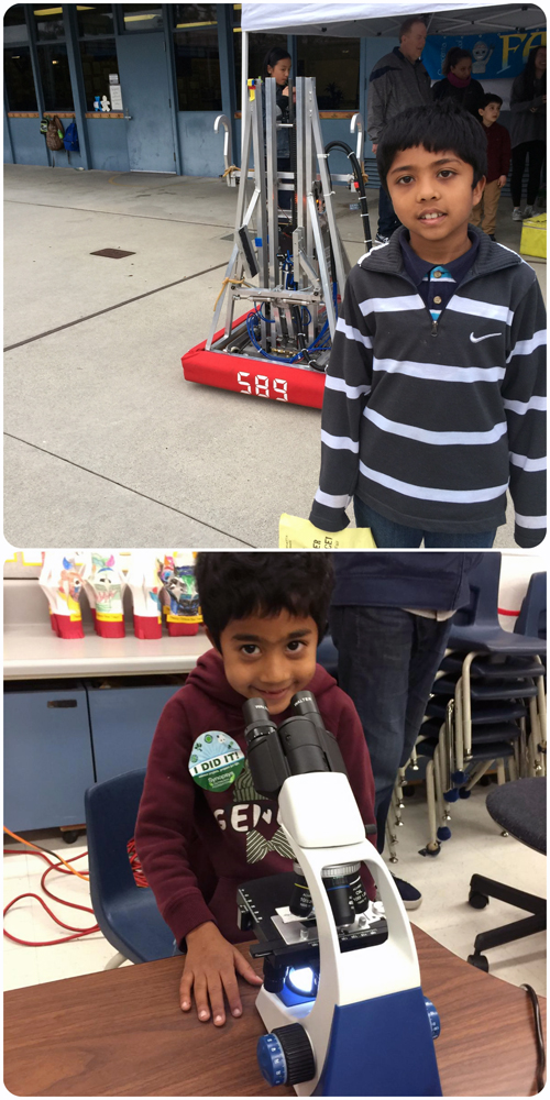 Many PTA volunteers worked together to make the Science Fun Fair possible. The co-chairs were Meena Chokkalinga Arunachalam and Jackie Bodnar. In addition, over 30 volunteers from Rosemont Middle School and CVHS Academy of Science and Medicine came to help. Steve Schroeder, a NASA/JPL parent, brought the Mars rover. Science fair tri-fold project boards were donated to the school by Synopsis Outreach Foundation.