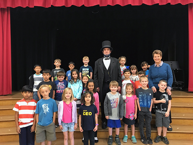 Share on Facebook Follow on Facebook Add to Google+ Connect on Linked in Subscribe by Email Print This Post Photos by Jennifer Sperber Abraham Lincoln (aka JP Wammack, husband of Monte Vista first grade teacher Nancy Wammack) visited Monte Vista Elementary to educate students about the life and legacy of the nation’s 16th President. Abe Lincoln Spends His Birthday at Monte Vista added by CV Weekly on February 15, 2018View all posts by CV Weekly →