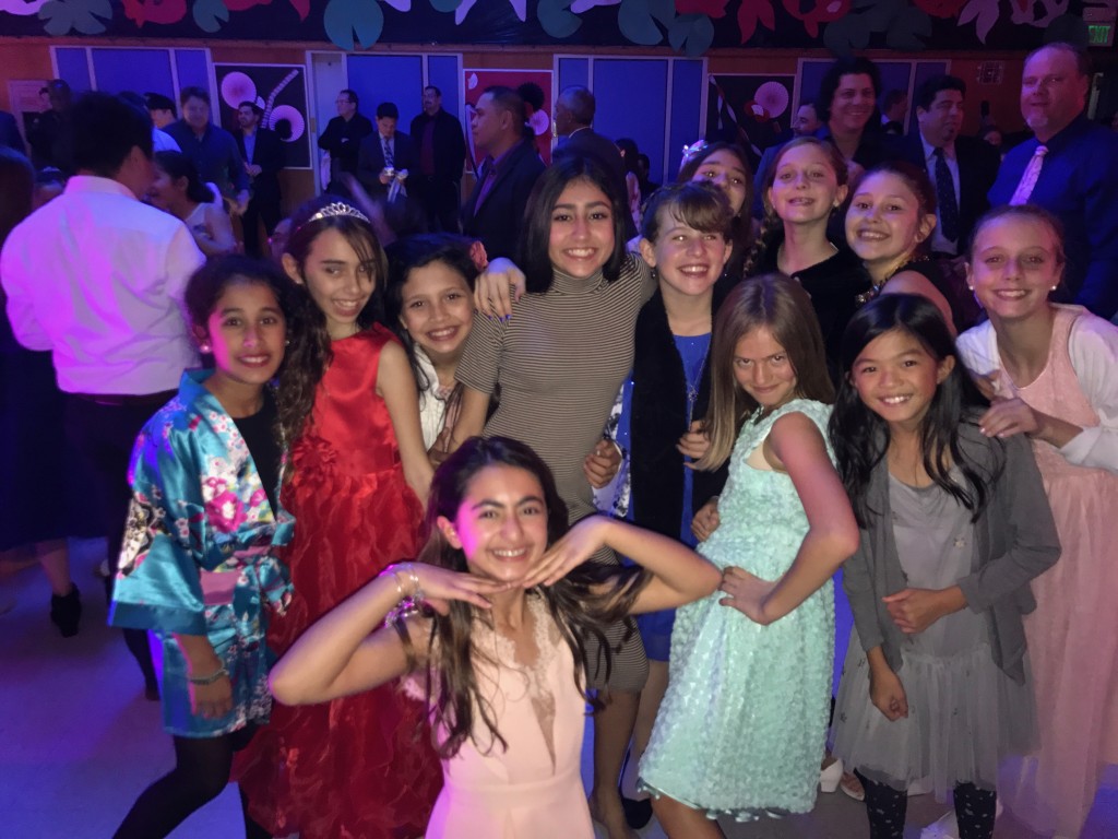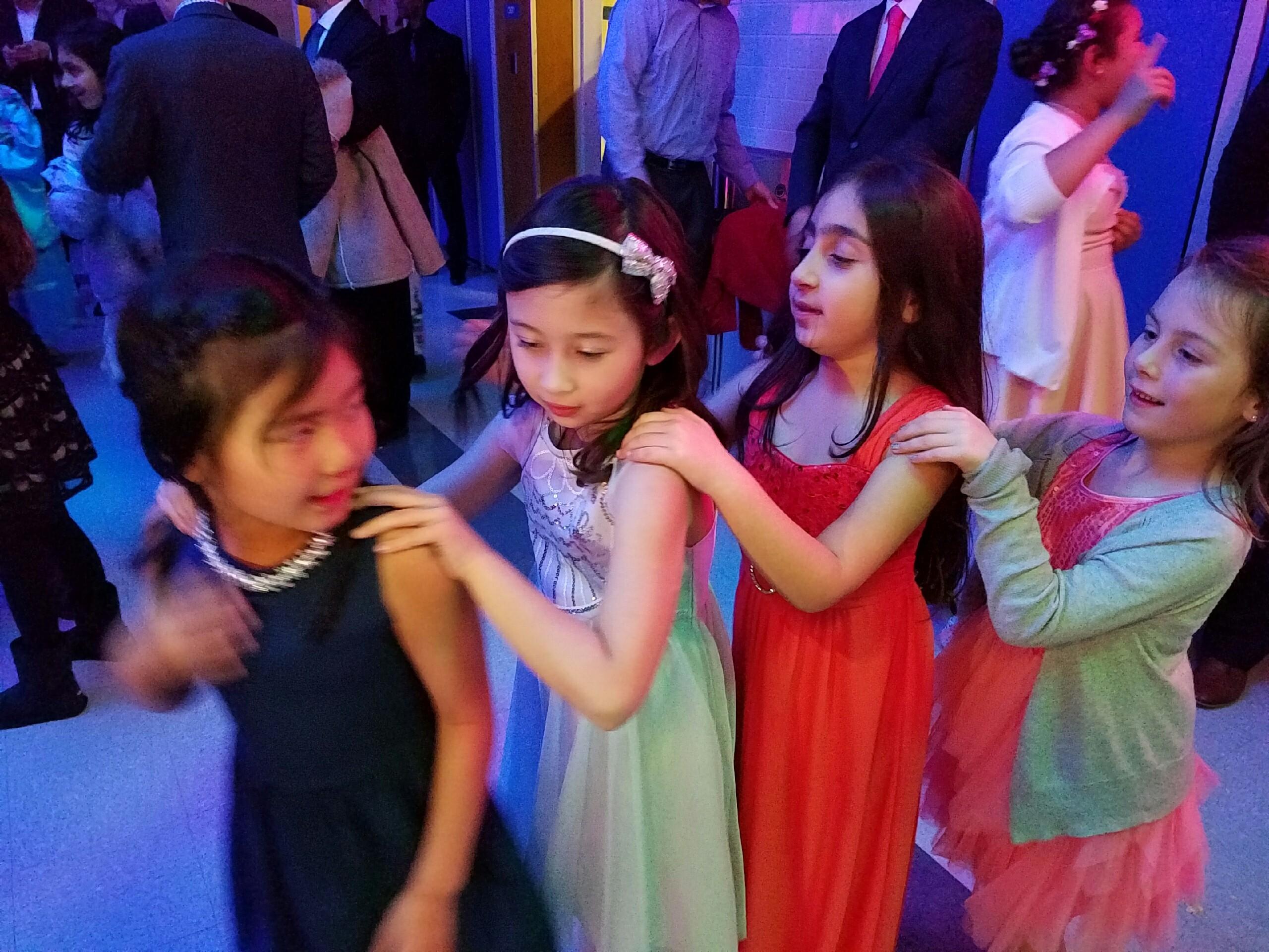 The sixth grade girls, their dads and younger siblings were seated for dinner on the stage as a treat to honor their final year as Valley View students.