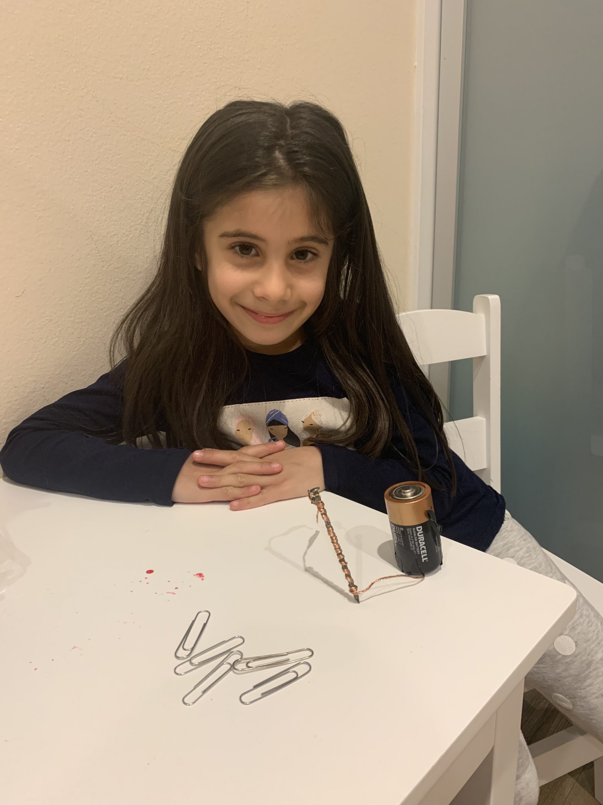 “My project was about how to make a magnet using a battery, copper wire, nail and paper clips,” explained Audrey. “My dad watched a few videos and gave me some options and I chose to do the magnet project with his help.”