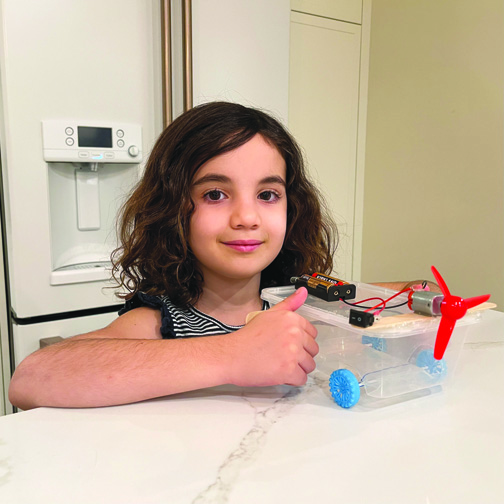 This year was the first time first grader Isla Avanessian participated in the science fair. Isla said, “My project was called ‘Robot Town’ because the robot I built goes around town helping take [out] the trash or deliver groceries, and it helps with pollution, too. I always wanted to build a robot, and I wanted to help my community at the same time. I really enjoyed building my robot because I got to do it with my family. My sister Luna and I still play with it at home.”