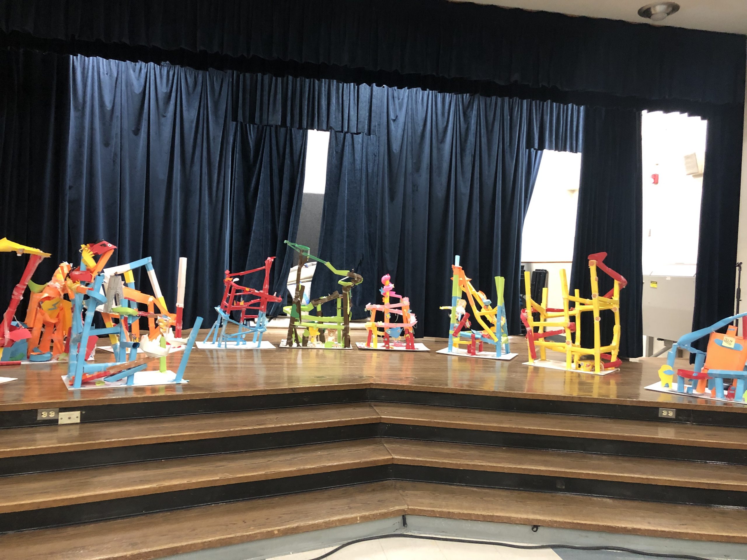 The goal of the sixth grade engineering build was to work in teams to create a roller coaster from cardstock paper to maintain a marble rolling for the longest time. Besides first place and runner-up for the longest coaster time, prizes were given for creativity with the best theme.