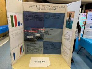 “My inspiration for this project is from my observation during my stay in a rural town in India,” Arunachalam said. “According to UNEP, 40% of our water sources, that is about 75,000 bodies of water across 89 countries, are polluted. California, the Golden State that we live in, also has this problem. More than 370 of the approximately 7,400 water systems regulated by the state are contaminated above the maximum levels for a range of substances known to be dangerous to humans, according to a 2022 report by the California State Auditor. I have created two filter setups: one portable and another one stationary that can filter our toxic substances using inexpensive organic materials that are abundantly available. I have been participating in all Mountain Avenue Science Fun Fairs from kindergarten through sixth grade. I am graduating this year and will be missing this next year.”