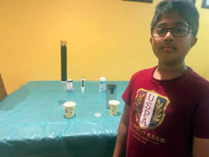 “My inspiration for this project is from my observation during my stay in a rural town in India,” Arunachalam said. “According to UNEP, 40% of our water sources, that is about 75,000 bodies of water across 89 countries, are polluted. California, the Golden State that we live in, also has this problem. More than 370 of the approximately 7,400 water systems regulated by the state are contaminated above the maximum levels for a range of substances known to be dangerous to humans, according to a 2022 report by the California State Auditor. I have created two filter setups: one portable and another one stationary that can filter our toxic substances using inexpensive organic materials that are abundantly available. I have been participating in all Mountain Avenue Science Fun Fairs from kindergarten through sixth grade. I am graduating this year and will be missing this next year.”