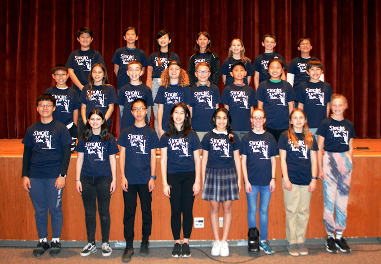 Pictures in the front row are Ethan Gao, Sarah Martellino, Michael Xu, Ashley Dietrich, Lori Muradian, Claire Lindstrom, Susha Easley and Piper Scherbert. The middle row features Joseph Yang, Julia Kallin, Finn Miller, Parker Winzenried, Declan Conwell, Chase Trimble, Heather Kim and Ethan Depies. In the back row are Ryan Geng, Angelia Chang, Calyssa Park, Amber Mase, Keira Miller, Quinn Scherbert and Nathan Gao.