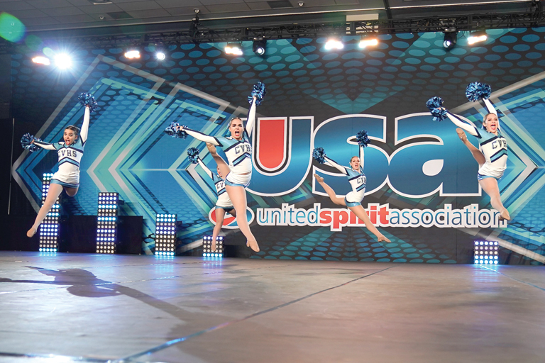 For the first time all three Crescenta Valley High School varsity cheer teams advanced to finals at the United Spirit Association Nationals held at the Anaheim Convention Center Feb. 14-16.