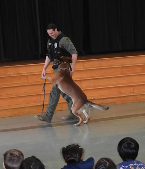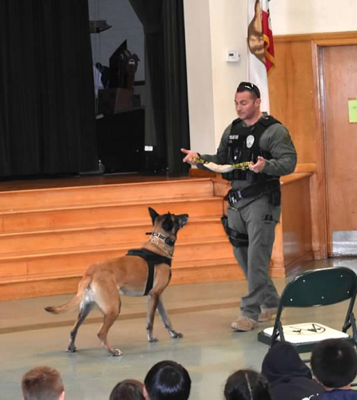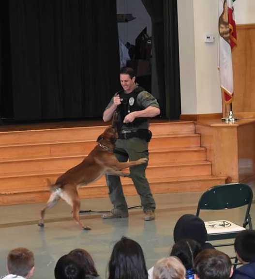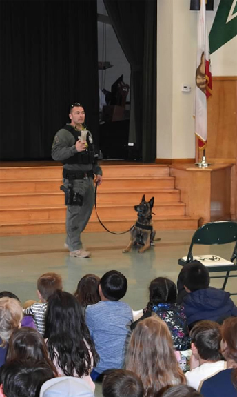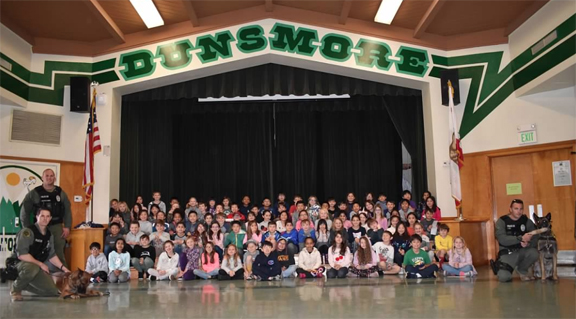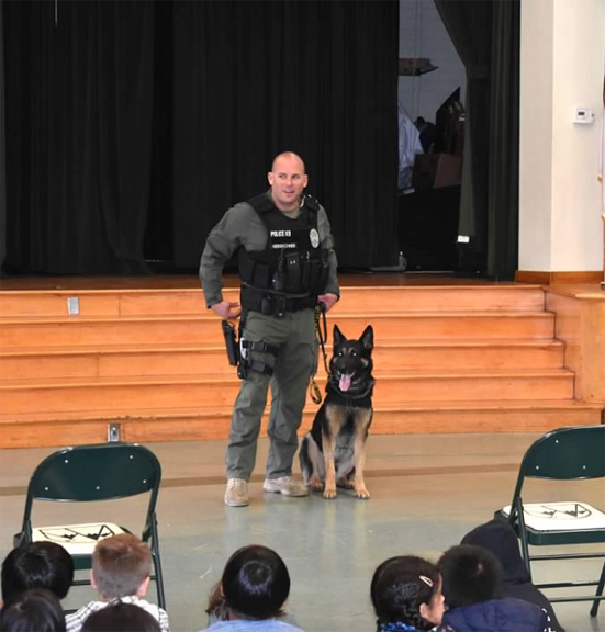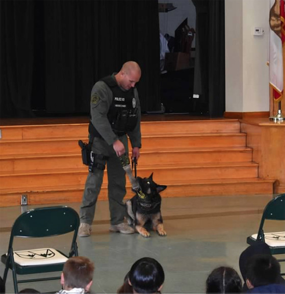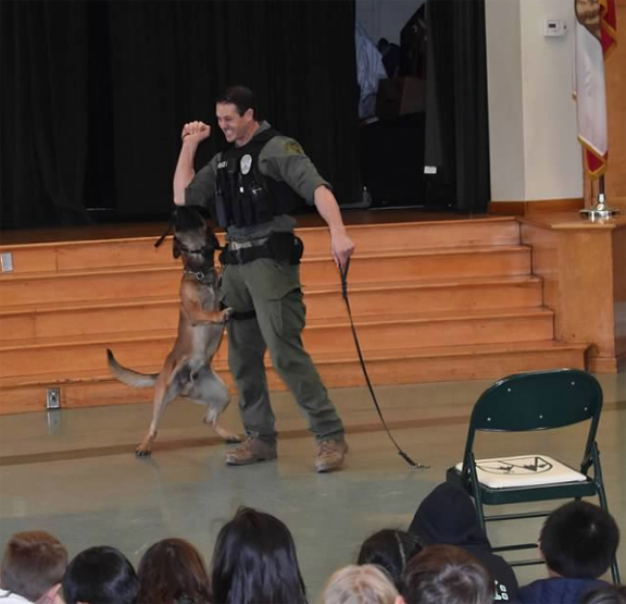 On Feb. 12, the Glendale Police Department’s K-9 Unit made a special visit to Dunsmore Elementary School third graders. The third grade classes had been working on an animal helpers unit in language arts. They read a non-fiction story called “Aero and Officer Mike” about a police officer and his K-9 partner. They also read about other animal helpers.