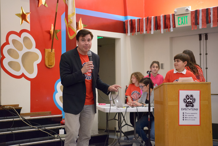 First grade teacher Nicolas James again directed the talent show with the help of PTA moms Lorita Meg, musical director, and Ameri Ramirez, talent coordinator. The Lincoln Student Council was also instrumental in running the show, including members Jamie Shoemake, Matthew Baldwin, Dominic Esquival, Noah Walch and Artem Seregin, Penelope Lusparyan, and Serena Karjian, Cody Burrow and Keya Patel.