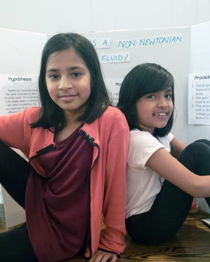 Sisters Alisha and Alina Singh completed a science project together about non-Newtonian fluids, such as oobleck.