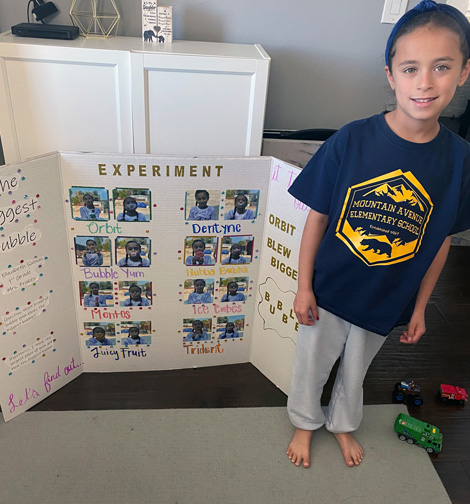 “Scientists Can Do Virtually Anything!” was the theme for the 2021 virtual Science Fun Fair at Mountain Avenue Elementary School. The Science Fun Fair family night was held via a Zoom webinar the evening of Feb. 26. Over 100 students in grades transitional kindergarten through sixth submitted projects by recording videos of themselves explaining or demonstrating their science fair project. Videos were uploaded to Flipgrid for the students, classes, and families to view all the science project videos.