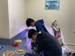 In the back of the library, Mulder set up a lab complete with microscopes, flowers in a food coloring experiment and examples of concepts such as friction and inertia. Mulder even dressed up as Ms. Frizzle.