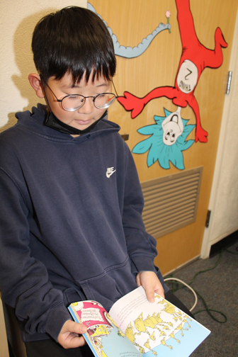 Samuel Kang, 10, La Crescenta Elementary School fifth grader, reads Dr. Seuss books in his “free time.”
