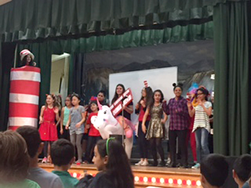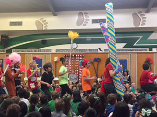 On March 17, John C. Fremont Elementary School held a Dr. Seuss-inspired assembly in honor of the school’s read-a-thon. The assembly was put on by Theresa Osment’s sixth grade class. The students wrote the script, created the whimsical costumes and designed the set for the hour-long assembly, taking a total of two weeks to prepare.