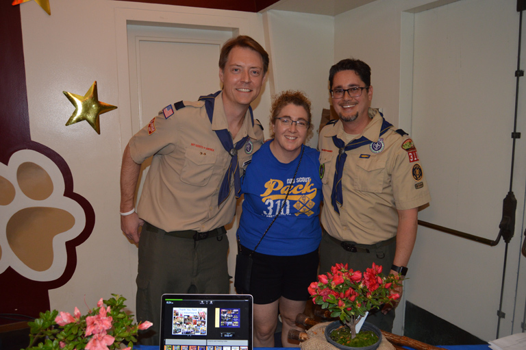 The evening started with a barbecue dinner and salad bar followed by the Arrow of Light ceremony led by Den 5 leaders Ken and Lisa McLemore and Cub master Wes Horton. The boys’ accomplishments and favorite outings were mentioned during the ceremony and, when the Arrow of Light ceremony ended, the Cub Scouts began the bridging ceremony, crossing over to become Boy Scouts. They were met by the Boy Scouts of Troop 319 who welcomed them into their Troop as they removed the Cub Scout neckerchiefs and fastened on their new Boy Scout neckerchiefs.