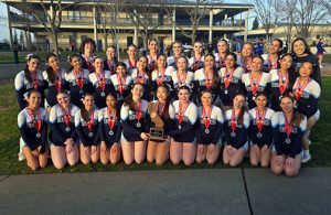 Excitement was in the air as the Crescenta Valley High School (CVHS) varsity cheerleaders traveled from La Crescenta to Folsom for the CIF state cheer championship at Folsom High School. There were 11 teams competing in their category. CVHS came in second place to receive a wooden CIF trophy shaped like California.