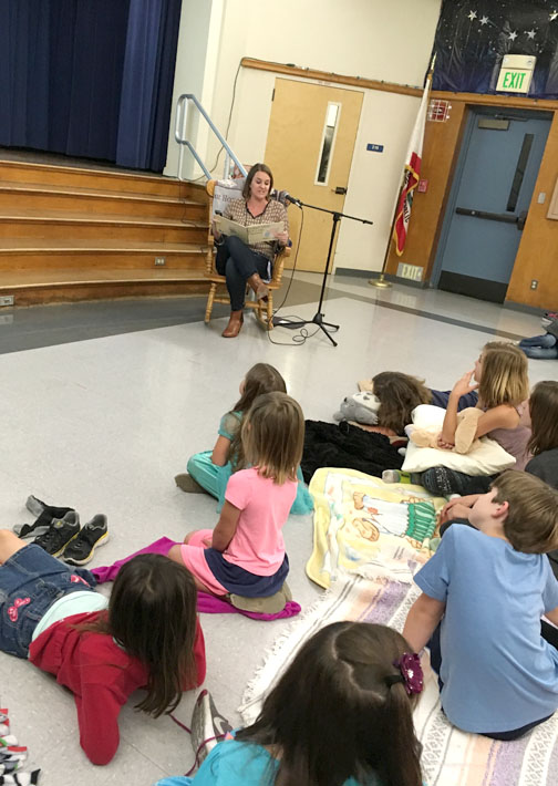 On March 3, Valley View Educational Foundation and the PTA held its annual Reading Night and Pancake Dinner celebrating “Read Across America” in honor of Dr. Seuss’ birthday. Jammies and blankets were welcomed in the auditorium as families enjoyed a delicious pancake dinner, the book fair and the PTA’s reading night. Students were treated to stories read by the principal, teachers and parents. Families were invited to shop for their favorite books at Mrs. Nelson’s Book Fair to support Valley View’s PTA.