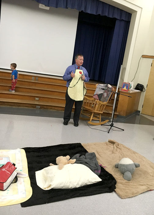 Fantastic V.V. readers_ Tawni Smith, Dr. Reynolds, Chris Barnes and Lisa LarsenValley View’s Book FairEmily Weller, Kindergarten teacher, reading her favorite bookIntroductions by Dr. ReynoldsParent, Lisa Larsen, reading a Skippy Jones book.PTA Board member and Book Fair Chairperson, Chris Barnes and Dr. Reynolds, getting the crowd ready for some reading fun.V.V. students enjoying a delicious pancake dinner, sponsored by the V.V. Foundation