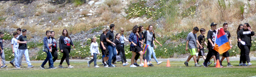 On Wednesday, April 19, approximately 150 students at Rosemont Middle School in La Crescenta participated in the school’s second annual “Walk, Talk, & Learn” event “to remember and commemorate the Armenian Genocide and all genocides,” explained event organizer Janna Kasmanian.