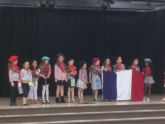 Part of the day included the Parade of Nations when all 17 troops paraded around the room and onto the stage carrying the flag of their country. They said their troop name, the name of their country, the tastes offered from their country, and any other interesting facts about their country.