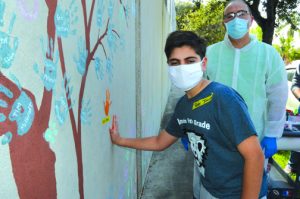 On Saturday, April 17 Lincoln Elementary sixth graders met with their kindergarten buddies in person for the first time this school year. They met to place their handprints on the Lincoln Wall, a favorite tradition that has gone on for years at the school. Traditionally sixth graders are assigned a “kinder-buddy” at Lincoln with whom they share a good book and work on seasonal art projects throughout the school year. Due to COVID-19 these activities were done virtually this year. Understandable the students were very excited to meet their buddies for the first time and place their handprints on the Wall on Altura Avenue for all to see.