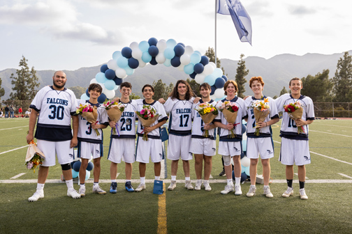 The Crescenta Valley High School boys’ lacrosse team celebrated its graduating seniors in April with a win over Village Christian giving them a League record of 9-2. Nine seniors will be moving on, including one of the two sets of twins on the varsity team.