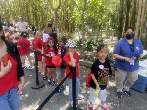 Lincoln Elementary School first grade students in Nicolas James’ class got an unexpected treat while touring the LA Zoo to learn about animal habitats. Lincoln mom Brenda Ramirez, Senior Parks Services attendant at the LA Zoo, was on hand to assist with the tour. She invited the first graders to take a turn feeding a leaf of lettuce to the giraffes. It was part of the LA Zoo’s effort to acclimate the giraffes to the larger crowds returning to the Zoo after the pandemic.