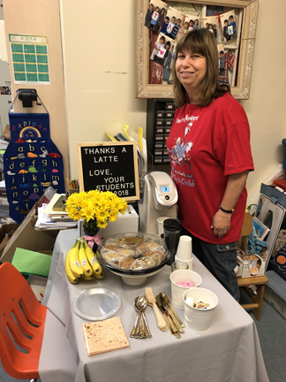 Teacher Appreciation Week at Dunsmore Elementary School began with a tribute on the Wall of Heroes in the teachers’ lounge. Teachers were treated to Superhero smoothies, gift cards, flowers and a relaxing 10-minute chair message. The celebrations continued with a yogurt breakfast and a staff luncheon to end the week. Teachers also had their doors decorated to brighten their week.