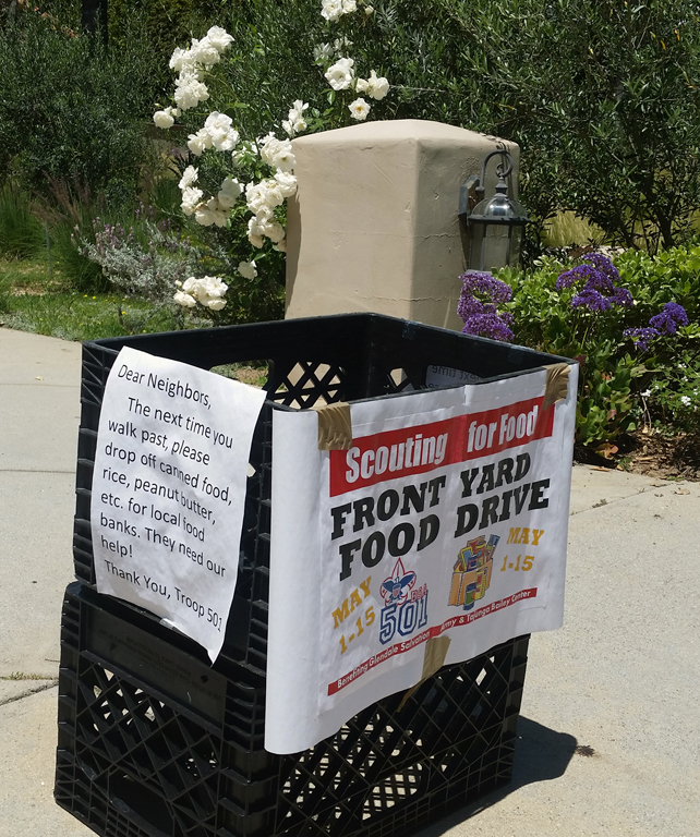 Thanks to the CV Weekly April 23 article shedding light on the need for donations at local food banks, Betty Bredemann mobilized La Cañada Boy Scout Troop 501 to help. Through a two-week front yard food drive, the Scouts collected over 50 bags of groceries from the generosity of neighbors. The groceries were loaded up and delivered to the Glendale Salvation Army.