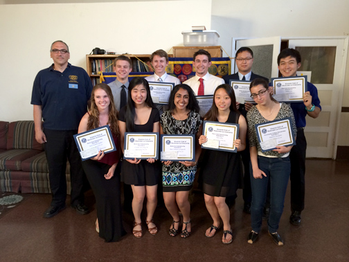 Kiwanis Club of Montrose-La Crescenta President Robert Wollenweber with scholarship recipients (back row from left) John Blood, Andrew Hart, Gavin Traber, Daniel Jung, Jaeho Lee. Front row from left are Jesse Gabor, Crystal Im, Devi Ganapathi, Nari Shin and Paulette Hacopian.