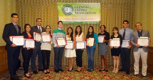 On May 22, the Glendale Latino Association awarded $14,000 in scholarships to 12 excellent students from GUSD, private schools and Glendale Community College. The awardees (pictured from left) are Christopher Aguilar, Adriana Flores, Joshua Amran and Brenda Balan from Glendale College; Saul Pelayo-Brambila, Jacqueline Cuateco and Gisela Aguayo from Glendale High School; Edmee Cuc from Hoover High School; Sydney Stanford from Holy Family High School; Jacqueline Tapia from Glendale College; Joseph Olvera-Sanchez from Clark High School; and Jorge Arias from Glendale College.