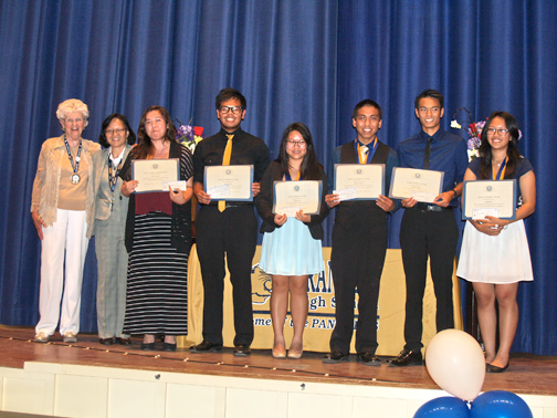 Joyce Ruygrok and Eileen Harada of the La Cañada AM Kiwanis presented the Hope of America and David Hermann awards to Franklin High School K Club members at their awards night.