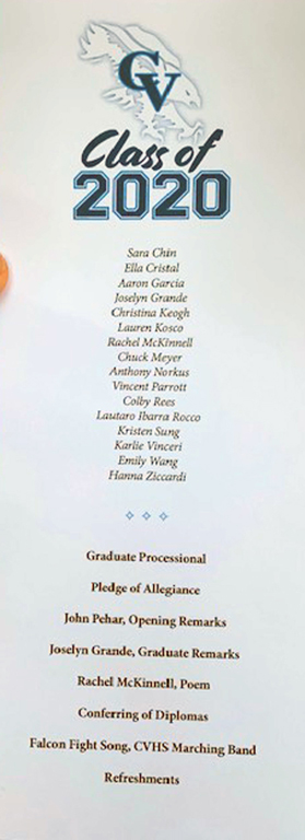 Among the graduating students was Jocelyn Grande, who was ASB president for the 2019-20 school year. She said that although it was a shame that a traditional graduation couldn’t be held for the CVHS senior students, it was nice to experience a ceremony with her close friends in a space that was much more personal.