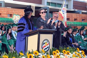 Commencement at La Crescenta’s Clark Magnet High School went off without a hitch as Class of 2025 seniors marched across an improvised stage to receive their diplomas on Wednesday, June 11. Handing out those precious diplomas were Clark Principal Mark Rubio, GUSD Superintendent Dr. Darneika Watson and GUSD Board Member Kathleen Cross.