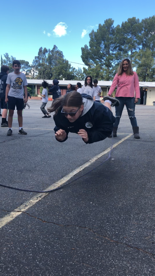 All grades took to the field rotating among fun activities such as relay races, jump rope, dodge ball, volleyball, Hula Hoops and more. Kids were creative not just by jumping, but doing push-up jumps as demonstrated by seventh grader Ashley Garcia. Outstanding teamwork was shown when a number of eighth grade students jumped simultaneously in one line.
