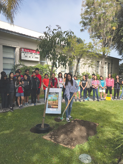 The award-winning artwork of Monte Vista Elementary School student Audrey Kim was celebrated with a tree-planting ceremony at the school.