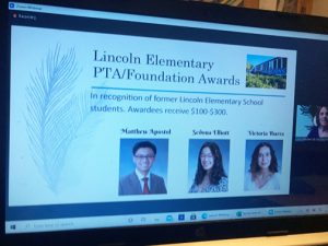 A few select CVHS seniors were awarded scholarships for college from the local elementary schools that they attended. Dunsmore Elementary Foundation awarded Shant Kevorkian and Hannah Roth scholarships. Sierra Greninger, Solmih Kim, and Stephanie Wichman received Fremont Elementary School PTA Foundation Scholarships. Matthew Apostol, Sedona Elliot, Victoria Ibarra, Alexander James, Leighton Ong Yiu, Jiyun Roe, and Eunice Yoon received Lincoln Elementary PTA Foundation Awards. Monta Vista Elementary School PTA Foundation awarded Helene Cruz, Connor Harvey, Alden Marriott, Sean Park, and Hannah Tanita scholarships for college. Lorianne Bodnar and Andrew Alan Kim received Mountain Avenue Committed to Kids (M.A.C.K.) Foundation Awards from Mountain Avenue Elementary School.