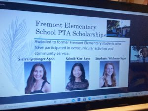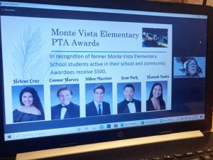 A few select CVHS seniors were awarded scholarships for college from the local elementary schools that they attended. Dunsmore Elementary Foundation awarded Shant Kevorkian and Hannah Roth scholarships. Sierra Greninger, Solmih Kim, and Stephanie Wichman received Fremont Elementary School PTA Foundation Scholarships. Matthew Apostol, Sedona Elliot, Victoria Ibarra, Alexander James, Leighton Ong Yiu, Jiyun Roe, and Eunice Yoon received Lincoln Elementary PTA Foundation Awards. Monta Vista Elementary School PTA Foundation awarded Helene Cruz, Connor Harvey, Alden Marriott, Sean Park, and Hannah Tanita scholarships for college. Lorianne Bodnar and Andrew Alan Kim received Mountain Avenue Committed to Kids (M.A.C.K.) Foundation Awards from Mountain Avenue Elementary School.