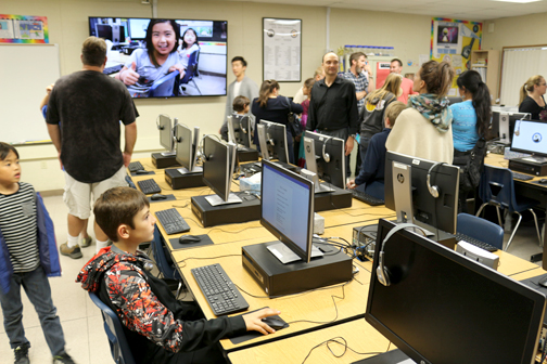 Before the school year ended, Valley View celebrated its new computer lab with a ribbon-cutting ceremony in May before the beginning of the school’s open house. Principal Dr. Brook Reynolds opened the ceremony with a few words of gratitude, reflecting on the commitment and vision of the Valley View Foundation and the parents who made the computer lab possible. Foundation president Nicci Amberg thanked all of the parents and community who attended the ceremony. In addition, Foundation board members (consisting of parents and teachers) were present to thank the Valley View families who contributed to and attended the fundraising functions throughout the year and who helped raise the money to make the school’s “Mission Possible.”