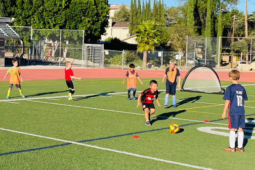 At 5 p.m., CASC coaches arrived to set up the fields. Under the hot sun, the coaches popped up the 12 mini-goals across CV’s football field. They dropped the cones evenly to mark the small fields and placed colored bibs on each field for the players. For two weeks, the club emailed out invitations in addition to using social media, texting and spreading the word across the Crescenta Valley.