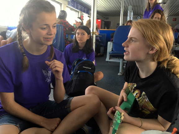 Girls enjoyed playing the ukelele and singing on the way to the island.