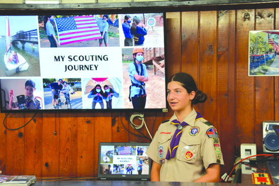 A major component of earning the rank of Eagle is successfully executing a project that benefits a religious organization, school or the community. At the Aug. 13 monthly breakfast hosted by American Legion 288 and VFW Post 1614 at Verdugo Hills Memorial Hall where Emelia’s grandfather, Don Thompson, is a member she made a presentation on her journey through scouting that culminated with her proposed Eagle project: building needed railing at part of the Hall.