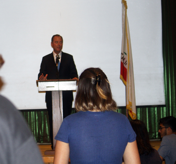 Congressman Adam Schiff answers a question from a Daily High School student during his visit to the school last week.