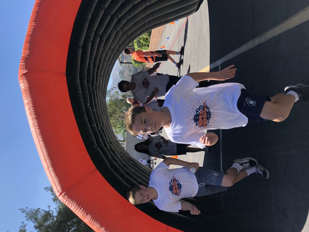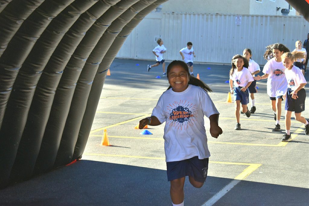 The school worked with Apex Fun Run as a leadership program teaching kids what it means to unite as a team. Students were challenged to run between 26 and 36 laps over 30 minutes with many completing well over 40, cooling off at water stations and running through misters on the warm day.