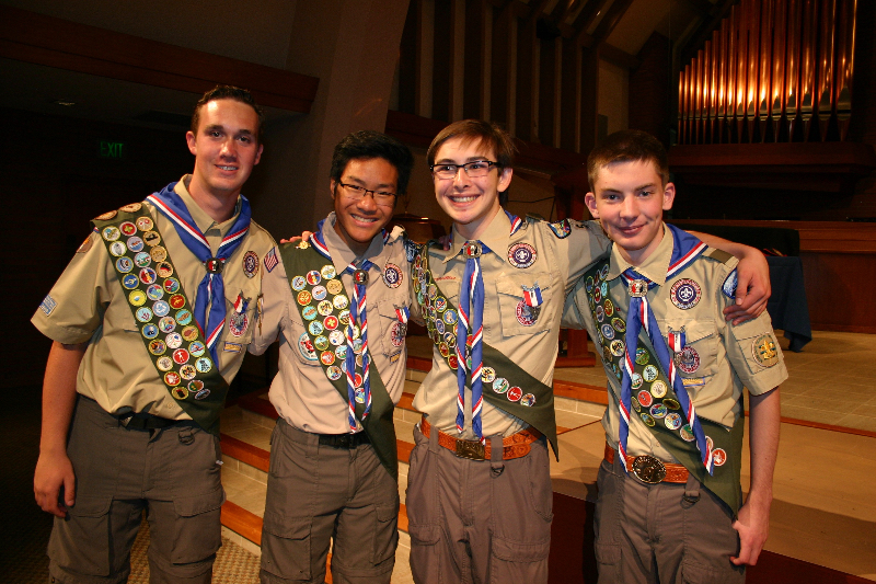 Four La Cañada Boy Scouts were recognized at an Eagle Court of Honor on Sunday, Aug. 28 at La Cañada Presbyterian Church. James DeRose, Travis Ford, Matthew Franklin and David Lam completed their Eagle Scout service projects within the last year. The boys have been members of Troop 502 since the fifth grade and the ceremony was the culmination of their Scouting experience and service to the community.