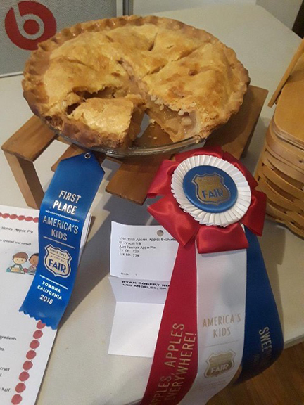 This year, Ryan found himself in that same position, sitting patiently alongside his dad, Robert. Then came the announcement he had hoped to hear: “Ryan Ruiz, blue ribbon and Best in Division for his apple pie entry.” Considering that Ryan competed in a field of kids ranging in ages from 6 to teenage, the achievement was extraordinary. Though Ryan has his sights on becoming a doctor, and plans on saving his Fair winnings for his college education, it would come as no surprise if there were more Los Angeles County Fair competitions in his future.