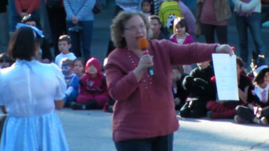 Teachers got in the spirit as well as they led their kids around the campuses. Maureen Palacios from Once Upon A Time stopped by to see the ghosts and deliver a donation from a fundraiser partnering the bookstore and Mountain Avenue elementary.