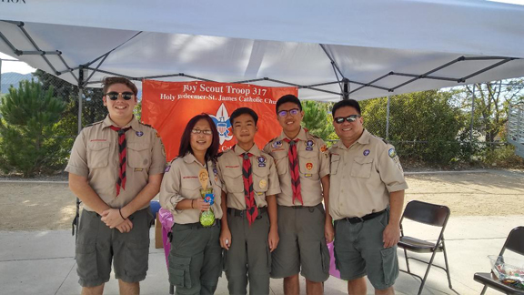 Boy Scout Troop 317 manned a booth with games for kids at the recent Holy Redeemer-St. James Parish Community Chili Cook Off event in La Crescenta on Nov. 4. Adults and kids all enjoyed an afternoon of food, games and live music. Boy Scouts Ethan, Allister and Edward joined in the celebration with fun games for the kids. The Troop took the second place “spoon” trophy in the best traditional chili category.
