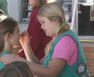 Visitors at their booth at the Harvest Market could “Make a Mutt” bookmark or have their face painted. The scouts handed out CV dog park information and answered questions about the proposed park.
