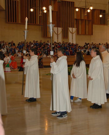St. James Catholic School was invited to participate in the annual Holy Childhood Association Mass celebrated on Oct. 26 at the Cathedral of Our Lady of the Angels. The school was chosen to have students serve as altar servers and present the readings for the mass. It was an honor for the classes that went to the mass and St. James students enjoyed being a part of the celebration. Nola Ching, St. James religion teacher, said that she likes taking her students down for this special mass because it is focused on the children. The Holy Childhood Association started more than a century ago as an outreach for children to help each other. St. James participates in the mass every year and expects to continue the tradition in future years.